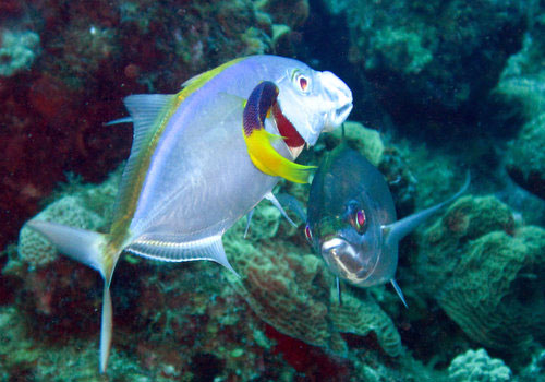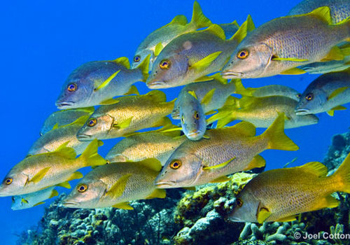 Look for cleaning stations where juvenile Spanish Hogfish and junvenile French Angels clean Bar Jacks and Groupers.