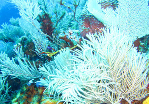 Chun-Chacaab is the reef you come to as you head towards the island from the Maracaibo arch. This reef is very different from the other reefs in Cozumel. You will notice huge fields of Sea Plums, Sea Rods, and some Sea Fans. The dive starts at about 70'. It is mostly this depth the entire dive. There are a few rounded ridges that parallel the current. Some of these ridgetops are about 50'. You will see quite a few crevices and overhangs. Look under these to see French Grunts, School Masters, Bermuda Chuts, and Lionfish.