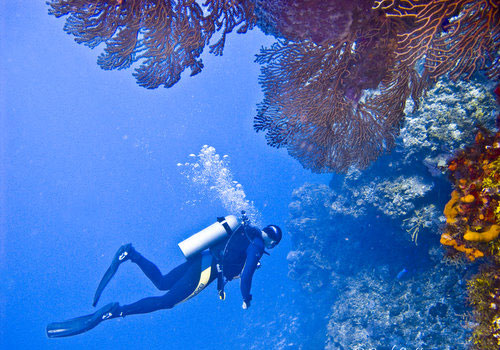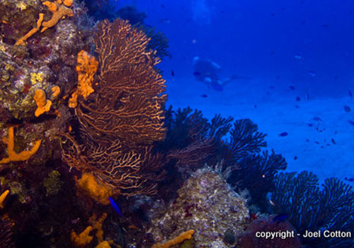 Sometimes called Colombia Regular, this site lies between Colombia Deep and Colombia Shallows. Divers can go through multiple swim throughs or swim next to high walls. The current is not too bad in between the formations. This is a nice dive for coral formations and for seeing big animals and colorful little creatures. You get a little of everything on this dive. You can choose nice deep swim throughs, wall diving, and at the top of the reef, you see healthy coral and sponges and plenty of fish.