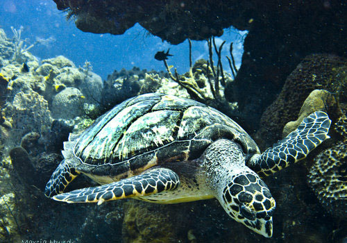 You can hardly miss seeing a few turtles here. They are very tolerant of divers.You might spot an Spotted Eagle Ray cruising by in the sandy areas or off the wall. Look for an octopus in the cracks of the wall. In 2012 two small reef sharks have been spotted. On any reef in Cozumel you can see any fish or animal at a given time. Below is a general guide.