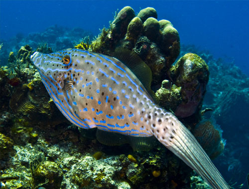 There tend to be more fish and animals here than on Palancar. If you are lucky, you might spot an eagle ray cruising the sand or the depths. You'll see some Scrawled Filefish, Queen Angelfish, and lots of schools of blue Creole Wrasse. You can hardly miss seeing a few turtles here. They are very tolerant of divers