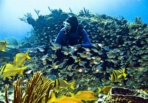 There are an abundance of barrel and rope sponges. You will also see a lot of black feather hydroids, which are beautiful to look at but painful to get touched by.